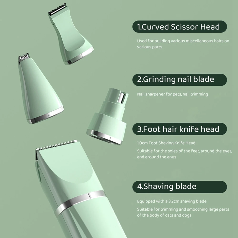1. The configuration of four cutter heads is equivalent to having 4 machine functions at the same time, foot hair, trimming, shaving, nail grinding, one machine with multiple functions, multiple parts can be used, solar hair, buttocks private parts, ear hair, eye area, etc., multi-functional applications on multiple occasions