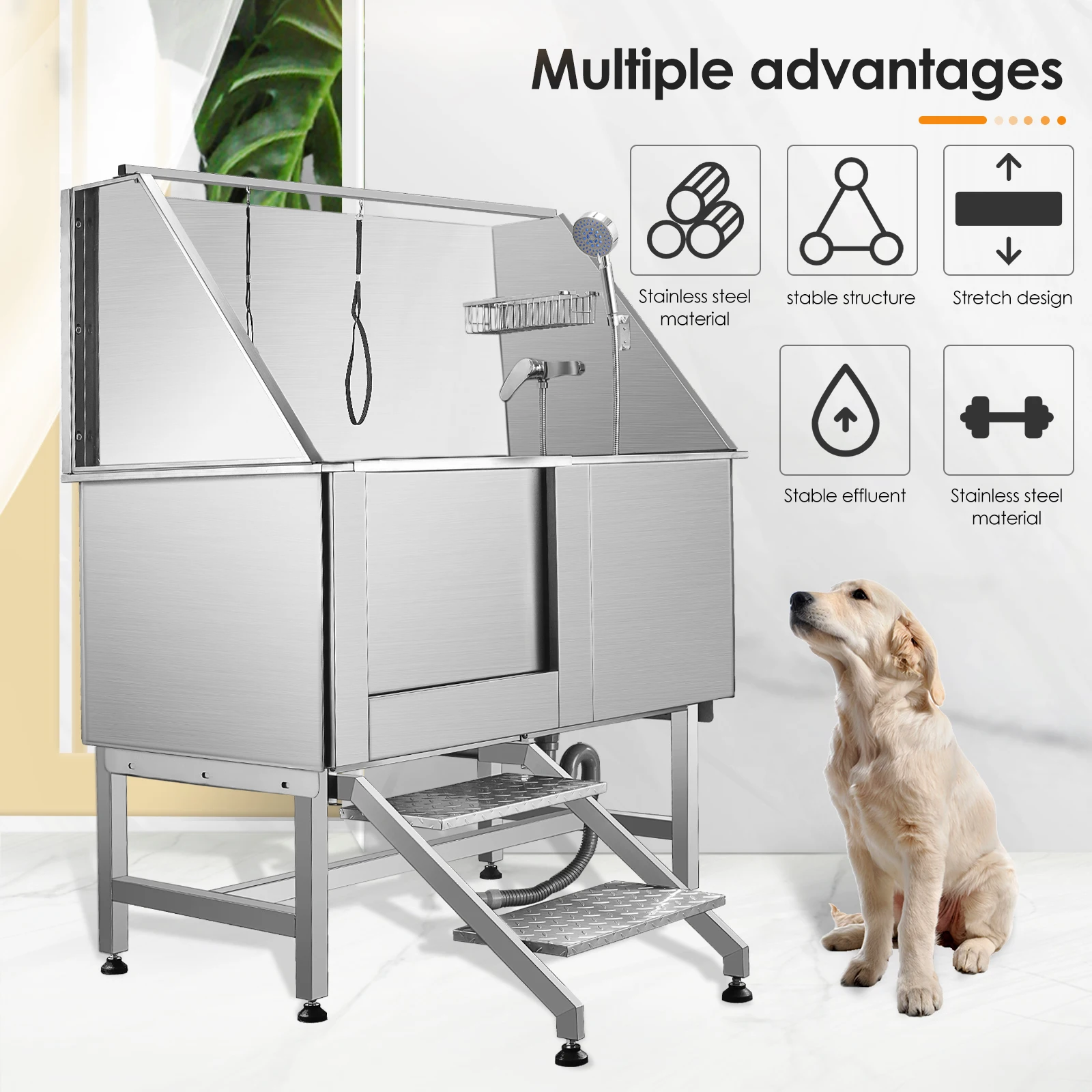 Well made stainless steel material:The pet grooming bath tub can accommodate various sizes of dogs and perform long-lasting use due to its high grade stainless steel material.