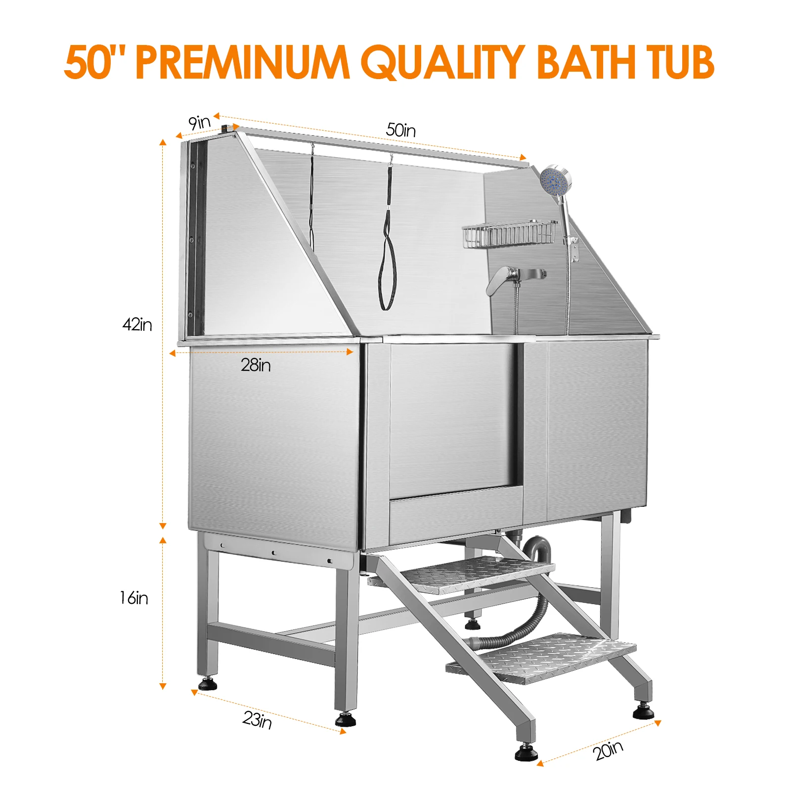 50 Inches Stainless Steel Pet Bathtub
