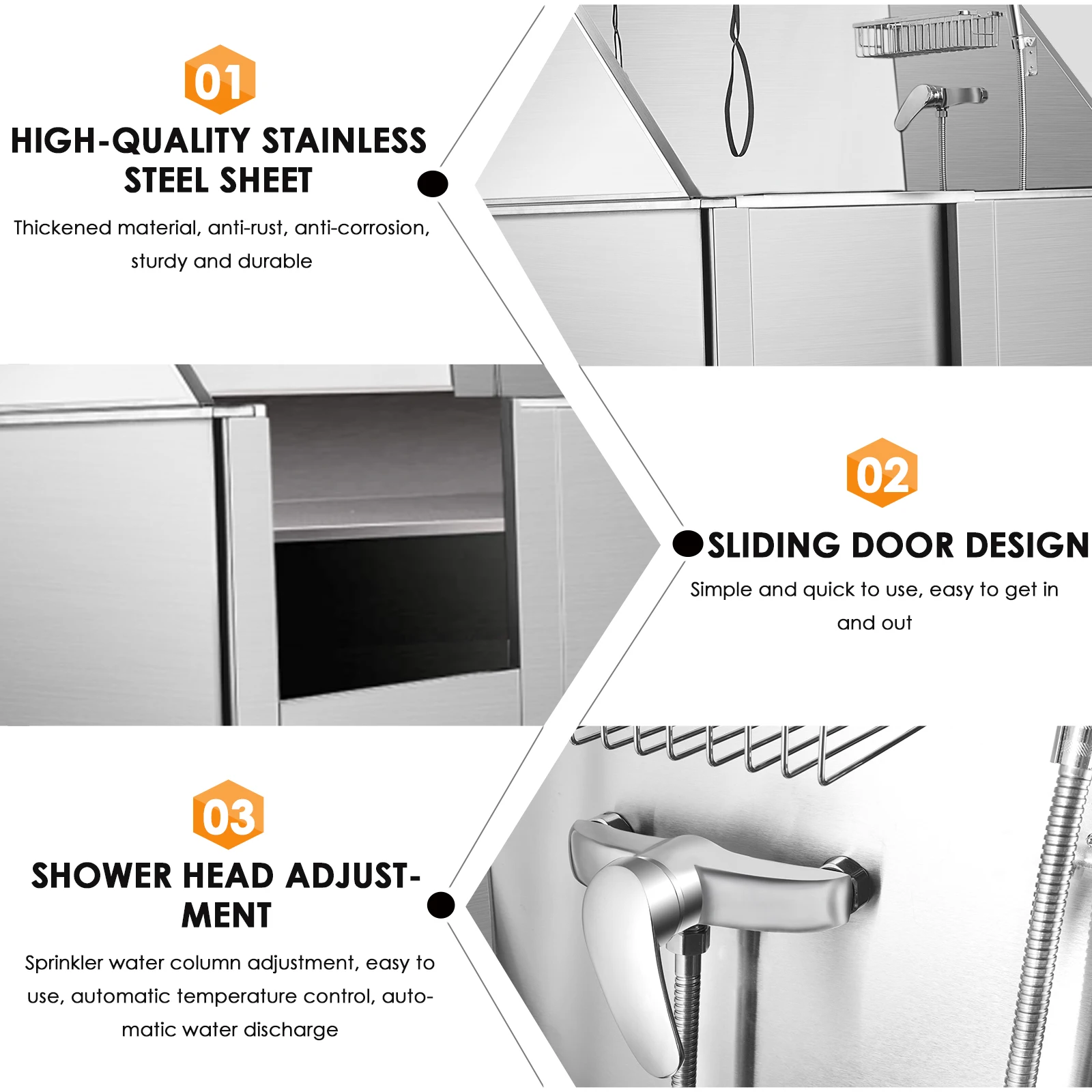 Anti-skid Ramp and Slide Door:The removable ladder with anti-skid surface helps your pets easily get into the tub. It can be easily stored when not in use.Door is easy to open and close. Great sealing effect makes this tub an ideal solution for the dog grooming.