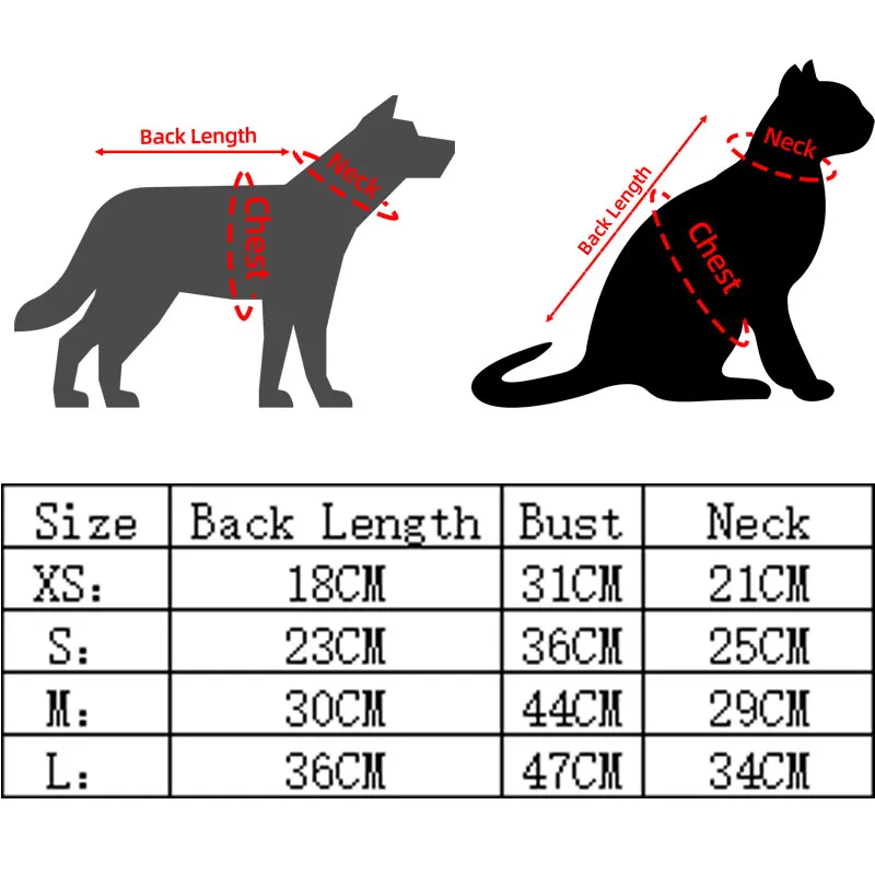 XS:Back Length18CM/7.09″ Bust31CM/12.2″