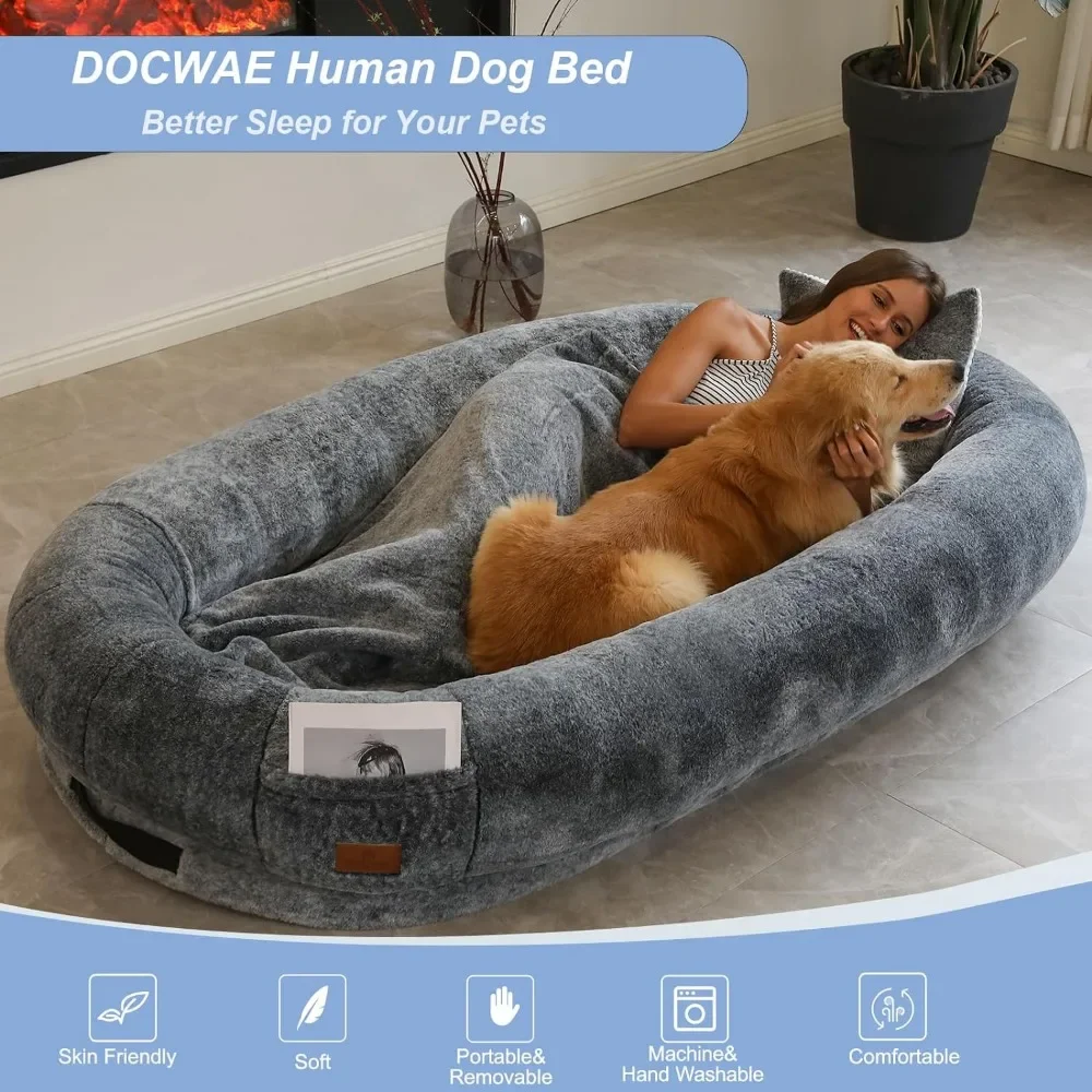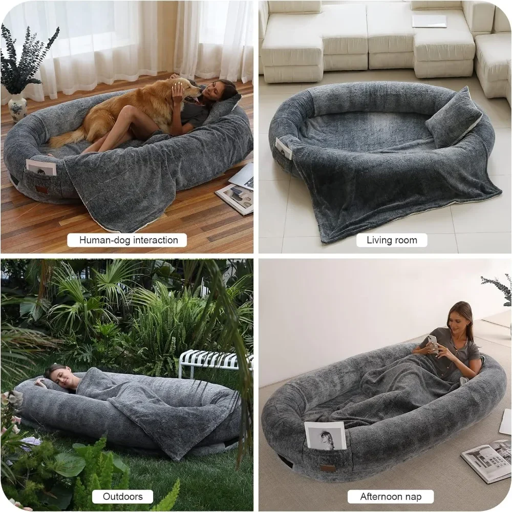 Giant Human Dog Bed With Blanket and Pillow Pet Accessories Adult Nap Bed Kennel Plush Beds Cats Cushion Supplies Products Home